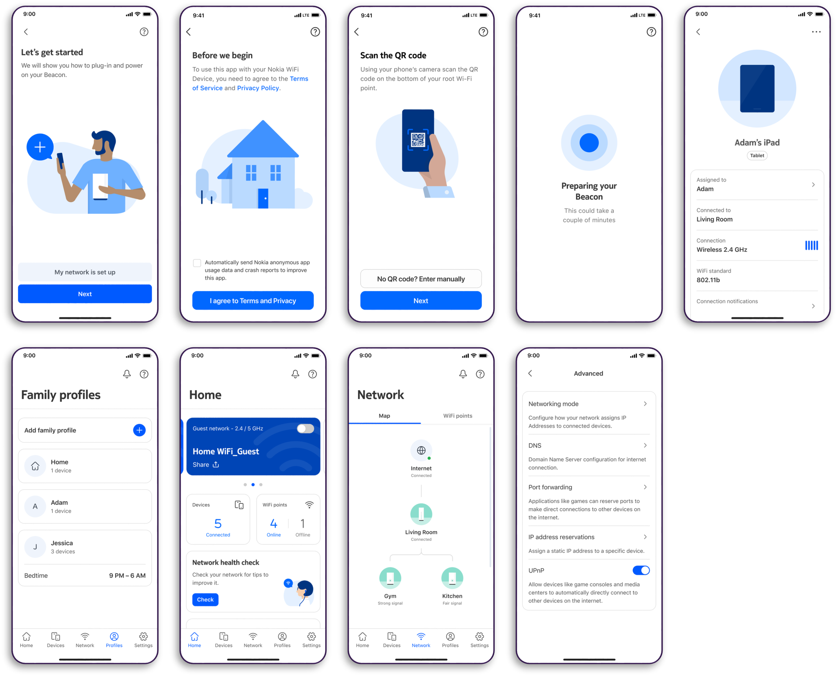 - Manage your network via a convenient app to: