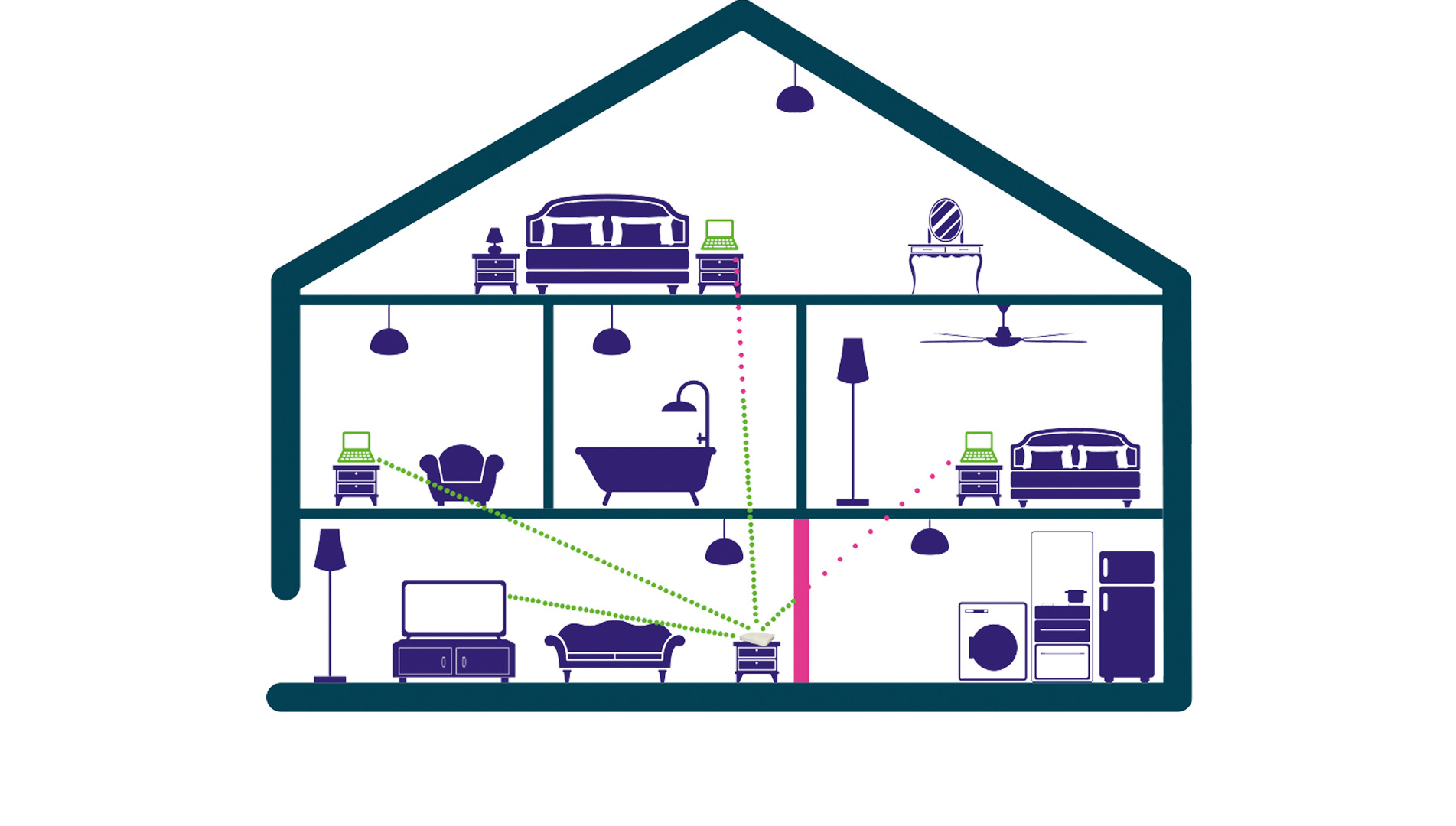 Try and position your Router in the centre of your home - you'll reduce the number of walls slowing down your signal, which means you can get better Wi-Fi in more places.