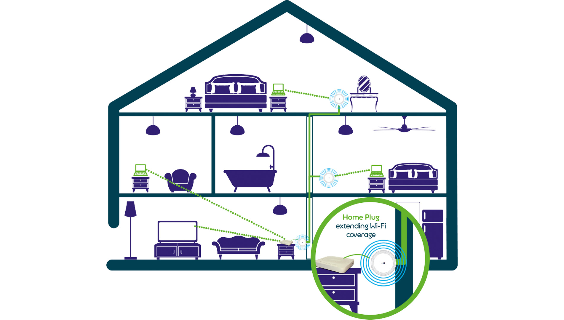 If you live in a terraced or semi-detached house, your neighbour's Wi-Fi network may be having an adverse effect on your own. For example, there may be instances where your neighbour’s router is closer to some of your devices on the first floor than your own router. This can severely degrade your Wi-Fi experience. Again, you can use Home Plugs or WiFi Extenders to extend your Wi-Fi range and optimise your experience.